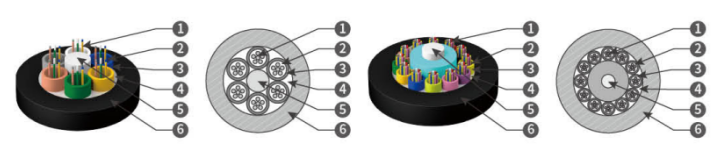Struktur kabel optik Gyftzy adalah untuk melampirkan serat optik 250μm dalam jaket longgar yang diperbuat daripada bahan modulus yang tinggi, dan mengisi jaket dengan sebatian kalis air. Pusat teras kabel adalah plastik bertetulang serat kaca (FRP). Jaket longgar (dan tali pengisian) luka di sekitar teras pengukuhan pusat untuk membentuk teras kabel padat dan bulat. Jurang di dalam teras kabel dipenuhi dengan pengisi tahan air. Sarung retardan api yang diekstrusi digunakan ke luar teras kabel untuk membentuk kabel.